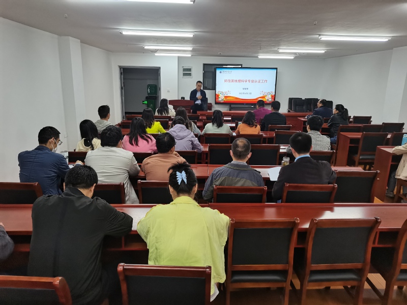 4月13日下午,城环学院在学院会议室举行了地理科学师范专业认证工作报告会,会议邀请了学校教务处处长胡艳军作师范专业认证工作主题报告。学院班子成员、全体教师聆听了报告,报告由副院长葛绪广主持。