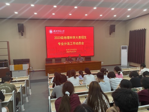 为推进 做爱视频 2023级地理科学大类分流工作的顺利进行,使学生充分了解各专业特点及发展方向,能够选择适合自己的专业,6月27日下午, 做爱视频 在艺术设计大楼2J01教室召开2023级地理科学大类分流动员会与专业宣讲会。大会由教学办副主任张明红主持,学院副院长葛绪广、地理信息科学系主任荆现文,2023级地理科学大类全体同学参会。