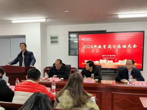 为了更好地总结经验教训、巩固成果、明确方向,进一步提升师范生培养质量, 做爱视频 于2025年1月2日在资环大楼7406召开了2024年教育实习总结大会。出席本次大会的有黄石市教师发展中心主任毛弟汉、黄石一中党委书记洪喜、黄石十六中副校长石涛、学院副院长葛绪广、地理科学系主任陈龑、实习与实训主任吴敏、学工办负责人郭文、教育实习带队教师代表吴晓东等嘉宾,以及21级地理科学专业学生。会议由地理课程与教学论教研室主任丁召静主持。