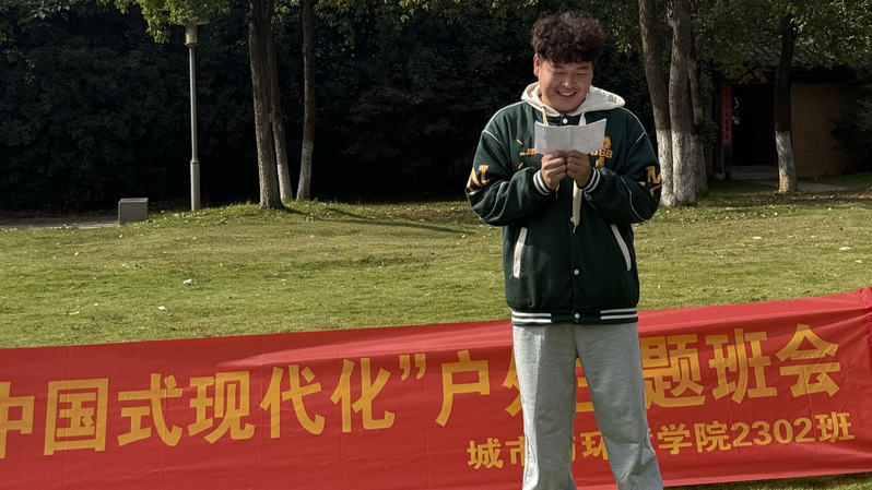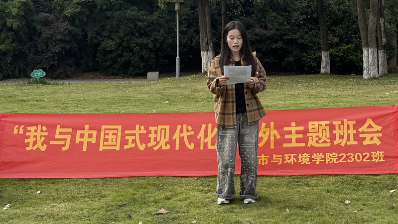 为深入学习领会国家发展宏伟蓝图,引导青年学生深刻理解中国式现代化的内涵与意义,自觉将个人成长融入国家发展大局,做爱视频 2302班于11月4日在黄石市法治文化公园组织开展了“我与中国式现代化”主题班会。班会由班主任郭文老师主持,班级全体同学参加。