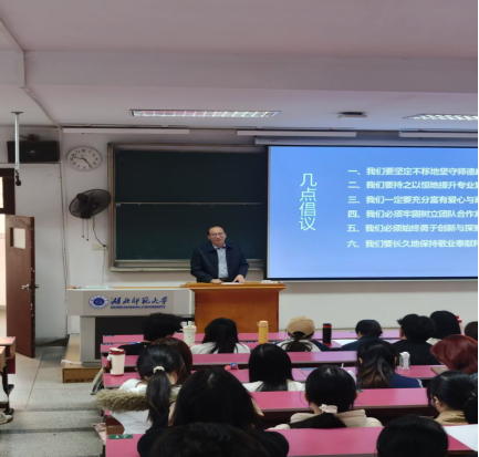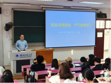 为深入贯彻落实新时代教师队伍建设要求,强化师范生未来职业道德规范,11月13日14:30-17:30,做爱视频 附属中学 (黄石一中)洪喜书记在教育大楼1J32教室举办题为“筑牢师德底线 严守教育初心”的讲座。学院葛绪广副院长、地理课程与教学论教研室丁召静老师以及2023级地理科学专业本科生和教育硕士参加活动。