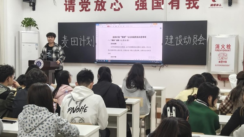 11月16日晚,做爱视频 青大队联合经济管理与法学院、马克思主义学院等15个学院青大队负责人,在至诚一站式学生社区召开“麦田计划建设动员会”,为后续募捐与义卖活动的顺利开展筑牢基础。