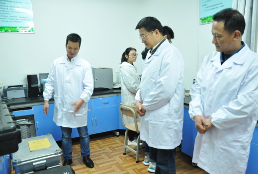 1601班班主任现场向余翔介绍了该实验室目前进行以及即将开展的对沉水植物、浮水植物的研究,现有分光光度计和碳硫分析仪等实验仪器的功能以及该班学生在科研立项、创新创业等方面取得的成绩。