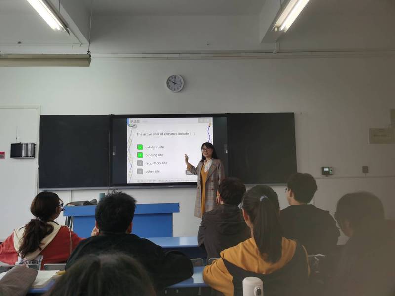 丁召静老师主讲课程为《自然地理学》,通过《柴达木盆地的前世今生》,对前世柴达木古湖、今生干旱的柴达木的特性变化及地貌形成,引导学生思考柴达木盆地未来可能变化趋势。教学内容关注学科前沿,引用大量文献中图表,直观科学讲解,同时通过小组讨论方式,启发学生思考。严素定老师主讲课程为《环境工程微生物学》,运用雨课堂在线上发布了限时习题,帮助同学们复习了上节课所学的有关酶促反应的动力学方程式,此外还讲解了新的知识点,并通过随机点名的方式,抽取同学回答问题,课堂气氛非常活跃。