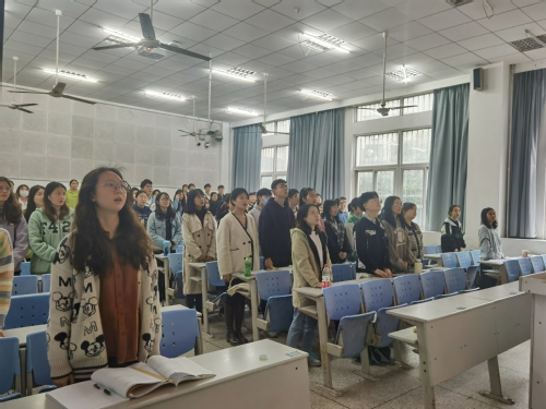 本次党日活动共七项内容,首先进入大会第一项,全体起立,奏唱国歌。第二项,全体党员齐唱入党誓词。第三项,交党费。第四项,集体诵读学习党章第九章第五十条。第五项,学生微党课,学生党员围绕习近平治国理政第三卷展开学习,在杨晓静、方浴、杨晓清、许媛媛、宋子豪、李梦瑶六位同志的带领下,学习了“人与自然和谐共生”、“绿水青山就是金山银山”、“推动经济高质量发展”等更多关于党的知识。第六项,由刘晨润同志带领大家学习了习近平总书记在中央党校(国家行政学院)中青年干部培训班开班式上的重要讲话精神、2022年全国教育工作会议内容和习近平总书记关于宗教工作的重要论述,让大家更深入的理解其中的精神和意义。第七项,抽取党员同志发表感想,要坚持以人民为中心的发展思想,把群众观点、群众路线深深植根于思想中、落实到行动上。进一步增强预备党员的党员意识和党性修养,发挥其先锋模范作用,时刻牢记为人民服务的宗旨,在生活中帮助同学,以身作则带动大家。至此,此次党日活动结束。