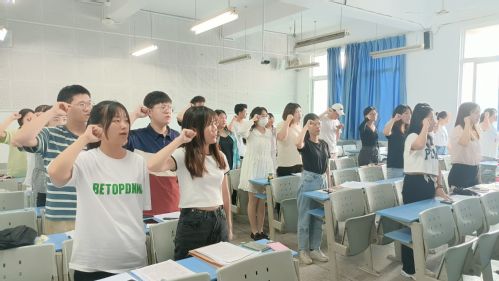 党总支副书记陈卓,党支部书记宫桃子、贾凡,学生党员以及预备党员。