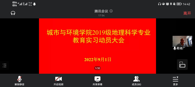 9月1日下午,做爱视频 采取线上方式召开了2019级地理科学专业教育实习动员大会。做爱视频 党总支副书记陈卓、副院长葛绪广、地理科学系主任吴晓东、地理课程与教学论教研室主任丁召静和教学办王娟老师,2019级地理科学专业全体同学参加了会议。会议由副院长葛绪广主持。