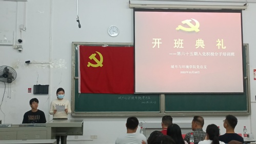 首先,全体入党积极分子起立,奏唱国歌。奏唱结束后,由杨应华老师为第六十五期党校做简介,并对第六十五期入党积极分子表示了欢迎,接着又具体地阐述了党校的意义,他指出入党积极分子们应该严守纪律,首先经过党校学习才能入党。在学习过程中,要结合实际,在学习中了解中国共产党是什么党,中国共产党为什么伟大,以此来端正入党动机。不断提升自身素质,才能在大学里发展为党员。另外,要求入党积极分子了解中国为什么能够强起来,以此来学习共产党精神。发挥模范作用,以党的纪律要求自己,要向九千多万党员靠拢。最后,杨应华老师祝愿城环学院第六十五期党校圆满成功。第五项:由本期学员代表黄莉婷同学发表讲话,在她的讲话中表明了要向党组织靠拢的决心,要努力提升自己,为党的事业做出最大努力。最后,由贾凡老师进行总结发言,她告诉入党积极分子们一定要端正入党动机,积极学习党规党章,学习科学文化知识,不断提高为人民服务的本领。