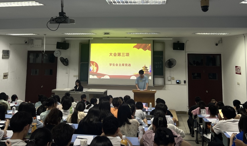 首先,各组织负责人以及各部门负责人上台进行竞选演讲。团总支副书记竞选者陈菲、李昕蒙、夏姝璟依次上台总结了过去一年的工作,展示了自己优势以及对团总支未来工作的想法。紧接着,学生会各部门竞选者也依次上台就学生会工作进行了总结,并表达希望凭借干事们的努力生会更好地为学院和学生服务随后,青大队队长竞选者以坚定的态度表示能够带领青大队把工作做得更好、新媒体自律委员会竞选者进行竞选发言。参加竞选的学生干部精神饱满,十分积极,充分展现了学院优秀领先人的风采与决心。在会议最后,由院党委副书记陈卓发表讲话,肯定了团学青媒律大集体的工作,同时对学生干部的奉献精神表示鼓励,希望广大学生干部端正思想,把握好团学青媒律这个大集体、好平台,在工作中培养自身的综合素质积极开展工作,牢记“助人者自助”,齐心协力促进城环学院越来越好!