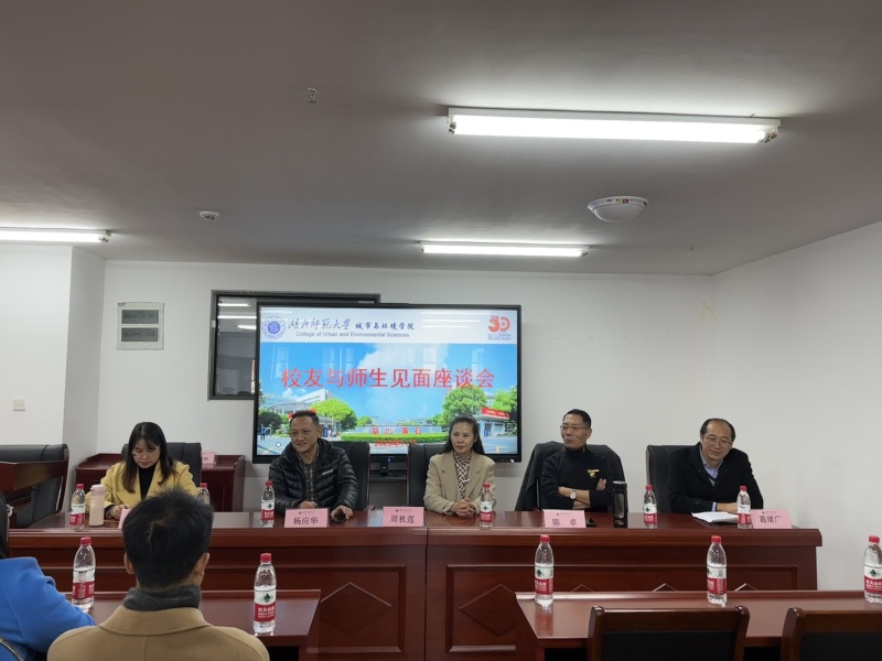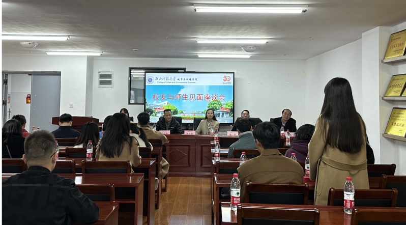 于2023年11月18日在资环大楼7406举办了校友与师生见面座谈会。参加本次座谈的有院党委书记杨应华、校档案馆馆长周秋莲(曾任城环学院党总支副书记)、院党委副书记陈卓、副院长葛绪广、严素定,以及毕业各届校友代表。本次座谈会由院党委副书记陈卓主持。