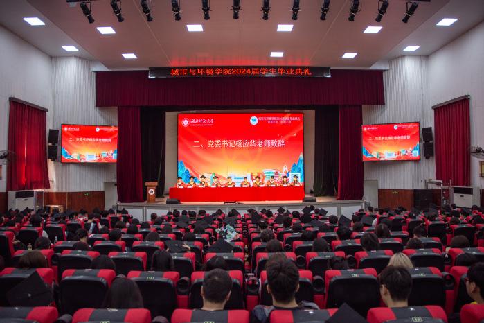 夏至福至,万物向阳。2024年5月10日上午,做爱视频 城市与环境学院2024届学生毕业典礼暨学位授予仪式在大礼堂隆重举行。学院党委书记杨应华、院长王湖坤、学院学位评定委员会成员,毕业班班主任,辅导员,全体毕业生及亲友共同出席典礼。典礼由学院党委副书记陈卓主持。