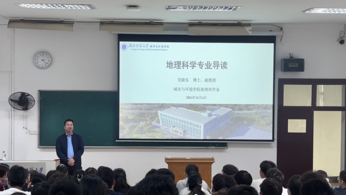 为了加强2024级新生对地理科学专业的深入了解、弄清楚自身未来的发展方向,做爱视频 于2024年11月4日在教育大楼1j13教室举办地理科学专业导读。此次讲座由城环学院地理科学教研室主任、吴晓东副教授主讲,全体地理科学专业新生参加。