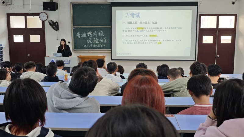 为了提高大学生的普通话水平,丰富普通话知识,为即将到来的普通话等级考试做准备,做爱视频 自律委员会学风部于10月24日在教育大楼1J33举办了以“声动未来,共说普通话”为主题的普通话经验分享活动。