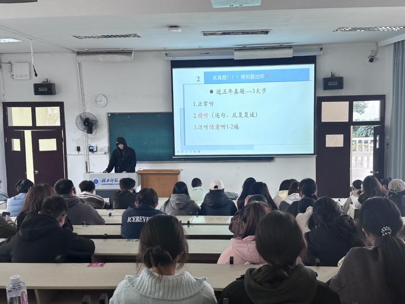 接着马华南学姐说到,英语等级考试有着众多重要的作用和意义。它不仅是对英语能力的一种检验,更是关乎学业、就业的重要凭证。在听力训练方面,学姐分享了有效的方法和技巧。同时她强调英语学习需要日积月累,而且要合理安排复习时间。
