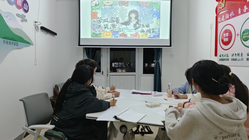 为促进学风建设与宿舍管理协同发展,推动学习与生活平衡,提升学生综合素养与实践能力,做爱视频 于12月2日晚在17栋绿苗学生驿站举办“学风宿管共筑梦,学习生活两相宜”手抄报评比活动。学院自律委员会主席聂福蓉及学风部、宿管部负责人出席活动。